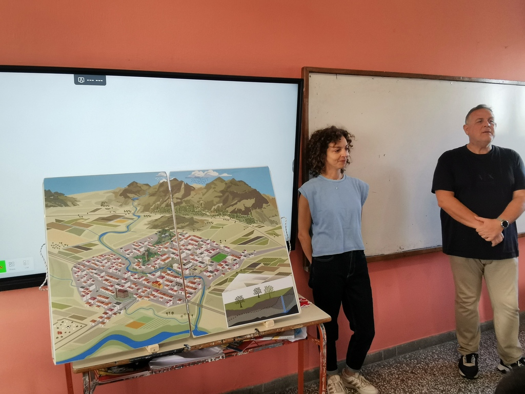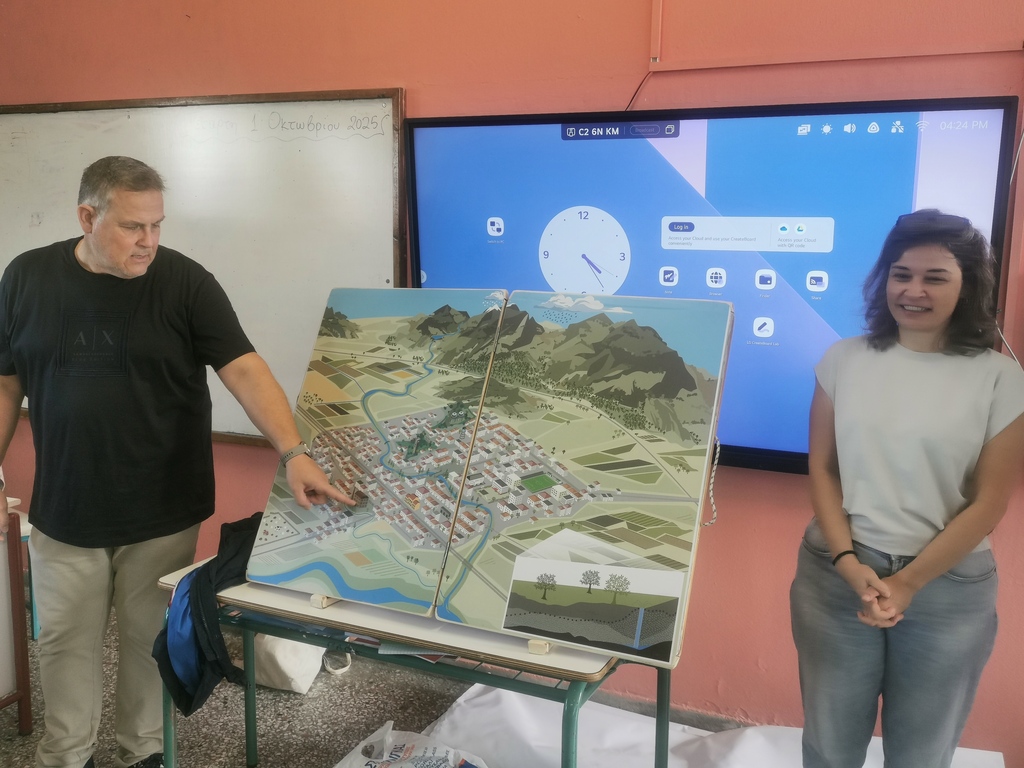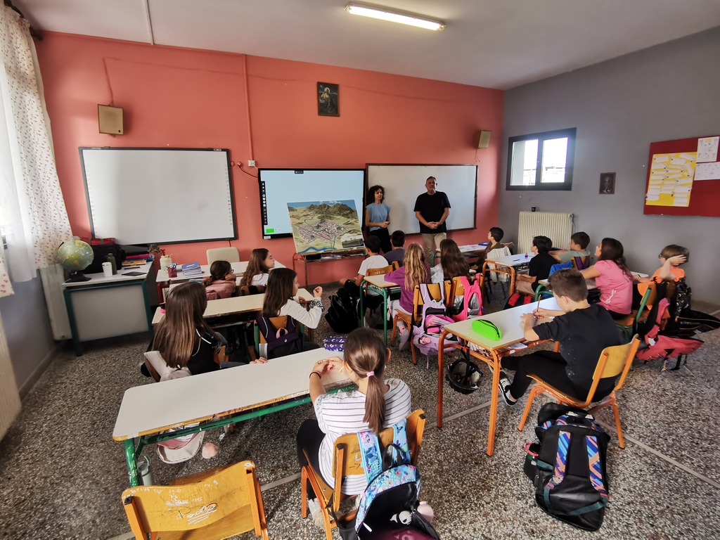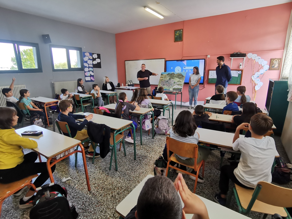 Η δεύτερη αφορά σε παρουσίαση παιχνιδιών, διαδραστικού πίνακα και σχετικού φυλλαδίου, σε μαθητές/τριες σχολεία. Στα σχολεία 5ο Δημοτικό Τρικάλων, 9ο Δημοτικό Τρικάλων, 27ο Δημοτικό Τρικάλων και Γυμνάσιο Βαλτινού, παρουσιάζονται στοιχεία με τρόπο απτό και κατανοητό για παιδιά από Δ΄ Δημοτικού έως Α΄ Γυμνασίου. Για παράδειγμα, με τον τίτλο «Το δώρο της βροχής / Το νερό στην πόλη» η δράση περιλαμβάνει βιωματική μάθηση και διαδραστικές δραστηριότητες, για να κατανοήσουν οι νέοι/ες τις επιπτώσεις της κλιματικής αλλαγής στην περιοχή μας. Επίσης, για να αναπτύξουν δεξιότητες και γνώσεις για την αποτελεσματική διαχείριση των φυσικών πόρων και την προστασία των κοινοτήτων από ακραία καιρικά φαινόμενα.